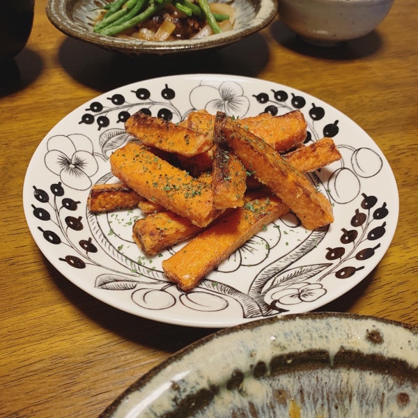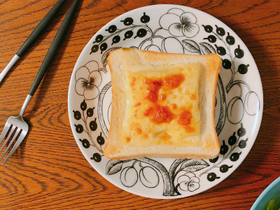 忙しい日の朝食は、このプレートにトーストと作り置きしてあるものを盛り付けます。いろいろのせていくとボリュームが出ておいしそうに見えるのが不思議、洗いやすいのも嬉しいです。