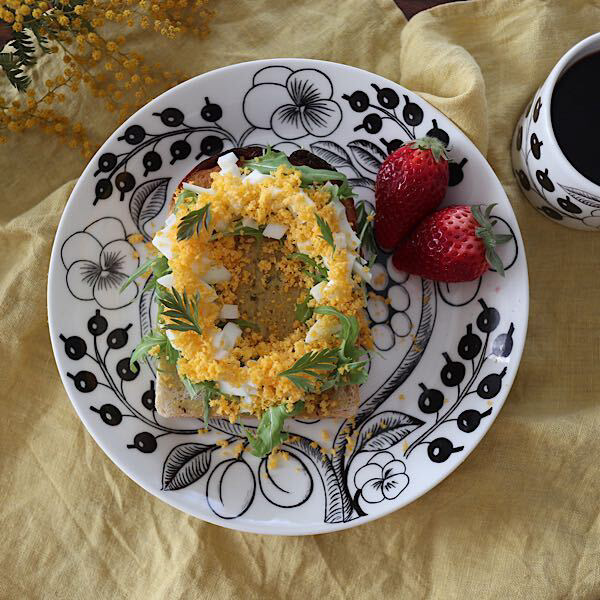 3月8日は「ミモザの日」。ミモザの日にミモザトーストを作ってみました。ミモザのお花みたいにふわふわにした卵の黄身に水菜と人参の葉で飾り付け。このトーストをブラックパラティッシの器に載せてみました。明るい黄色がモノトーンカラーの器に映えますね!ちなみに、この日は「国際女性デー」でもあり、イタリアでは身近の大切な女性に感謝をこめてミモザの花を贈る習慣があるんですって。日本でももっと浸透してほしいですね♪