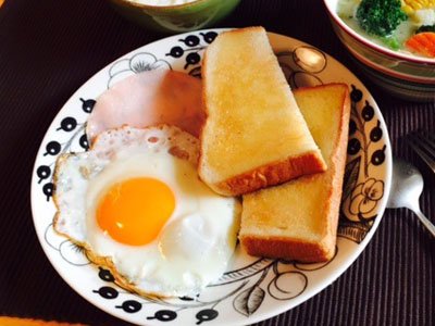 ある日の朝ごはん。以前ドイツで滞在したホテルでカリッカリに焼いたベーコンに感動して以来、すっかりベーコンはカリカリ派になりました!いつもはトーストをプレートに+おかずはミニパンで作ってそのままテーブルにが朝食の定番だったのですが、この日はワンプレートの気分だったのでブラックパラティッシの21cmプレートに。いつもと同じごはんでも、違って見える気がします♪