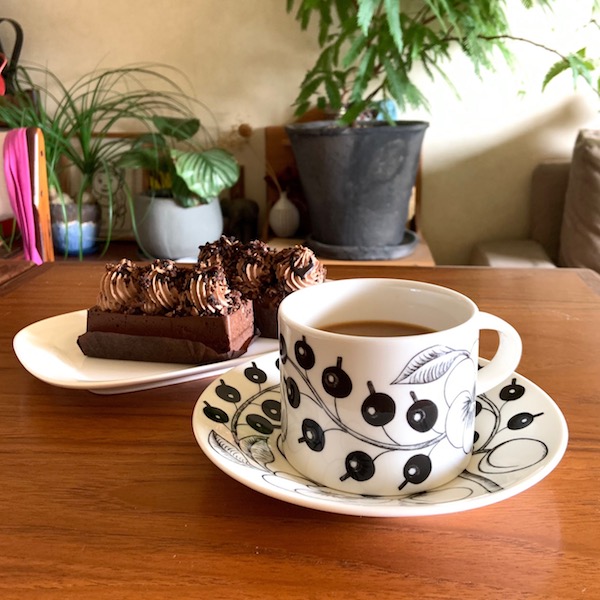 バレンタインデーのときめきは遠い過去のものになったけど、この時期はいろんなお店で登場するチョコスイーツにときめきっぱなしの毎日です。今日のチョコスイーツはスタバの濃厚チョコレートフルケーキ。甘すぎないビターテイストながら、贅沢なまでにチョコレートをふんだんに使っているため、美味しいんだけどコーヒーが進む、進む(笑)。たっぷりサイズのティーカップに入れておいて正解でした!おうちにこもる日々が続いていても、ブラパラのカップにコーヒーを入れるとグンと気分があがります。