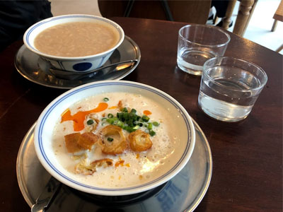 台湾の豆乳(豆漿)が楽しめるお店に行ってきました。土曜日の午前11時前でしたが、付け合せの点心は全て売り切れ!塩味の鹹豆漿と甘い花生湯(ピーナッツスープ)は、毎日食べたいやさしい味でした。お水が入ったボデガのグラスは雰囲気も安定感も2人がけのかわいいテーブルにもぴったりでした。