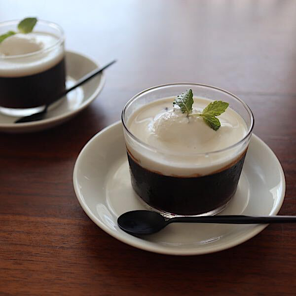 暑い時期に作りたくなるコーヒーゼリー。コーヒーゼリーの上には生クリームとバニラアイスを乗せて、ボデガなら溢れることなくバランス良く盛り付けられます。