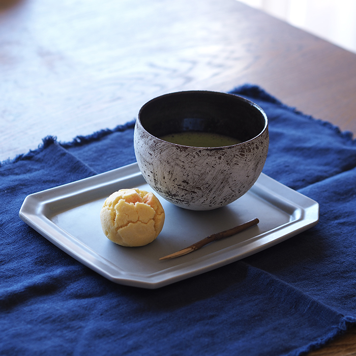 お出掛けの時、目的地以外で付近のパン屋さんと和菓子屋さんをGoogleマップでチェックしてから向かいます。今回わたしのアンテナに引っ掛かったのは和菓子屋さん。美味しいお茶と甘いもの、それをお気に入りの器でいただく、これで人生が豊かになります(私はです笑)。サクザンのスクエアMはお菓子をいただく時のワンプレートとしてもよい働きをしてくれます。フラットな長方形はキャンパスのようで何をのせても引き立たせてくれるし、マットな色味は和にも合うのでとても重宝するお皿です。