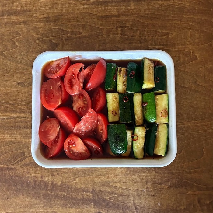 ズッキーニは生でも美味しくいただけますが、加熱することで中の白い部分がとろっと柔らかくなり、また違った美味しさが楽しめます。そんなズッキーニとトマトを合わせて作るマリネには、「野田琺瑯 バット」がぴったり。下ごしらえから保存まで一つで完結し、そのまま食卓に出しても違和感のないシンプルな白のデザインは、料理の彩りを引き立ててくれます。よく冷やして冷やし中華の具にしたり、お弁当やおつまみにもおすすめ。調味料は家にあるもので手軽に作れ、唐辛子の量で辛さも調整可能。保存容器としても使えるバットだから、作ってそのまま冷蔵庫へ。夏の常備菜づくりに大活躍してくれます。