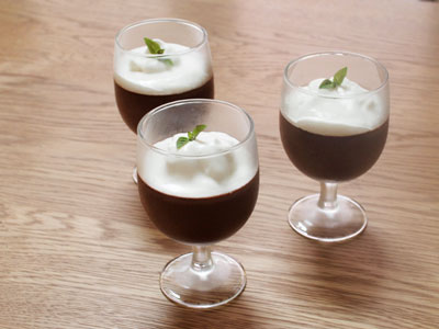 スタッキングできるワイングラスで、収納もコンパクト。私はキッチンでお料理しながらワインを飲んだり、普段使いに気軽に使ってます。脚付きってちょっと特別な感じがしますが、カジュアルに使えるグラスで、こんな風にチョコレートプリンでおやつを作ったりしてもかわいいです♪