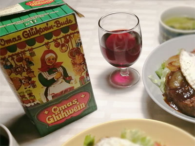 ドイツのクリスマスに飲むグリューワインをお土産でもらいました。シナモンやクローブなどのスパイスの香りがする甘いワイン。温めてホットワインとして飲むそうなので、グラスは食洗機もOKなガウディで。おいしくてガンガン飲めちゃいます~(汗)
