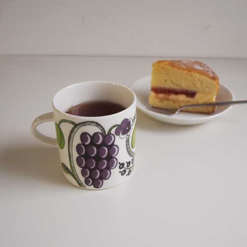 普段ブラックパラティッシのマグカップをメインで使っていますが、気分を変えようと思いパープルパラティッシのマグをお迎えしました。色が加わるだけで毎日のお茶タイムがより明るくなりました。出番の多いマグカップはいくつあっても良いですね。ティーマ、ムーミン、パラティッシと私のマグカップコレクションが少しずつ増えていきます。一緒にいただいたビクトリアケーキ、とても美味しかったです。