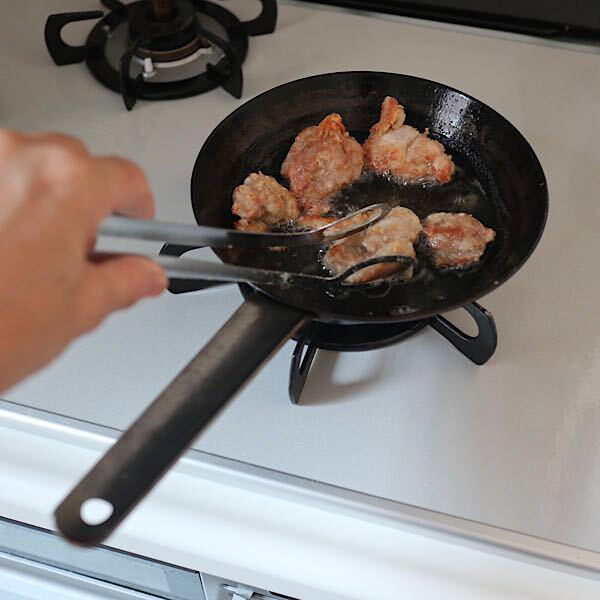 いよいよ始まりました、小学校の夏休み!それと同時に学童に通う息子のために毎朝のお弁当作りが始まりました。 息子の大好きな唐揚げは前日の夜に下味をつけて、朝はお弁当に入れる分だけ揚げます。たくさん揚げないのでこのフライパンのサイズがちょうど良く、しかも深さがあるので少量の油で十分! このサイズならハンバーグや肉団子など、お弁当に入れる分だけ作りたいときには本当に便利なサイズ。これで毎日のお弁当作りを乗り切ります!
