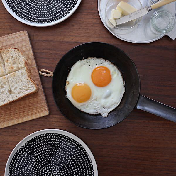 実は私、フライパンを5個(スキレットも入れると6個笑)持っています。その中でも一番使うのがこのちょこっとフライパン18㎝。我が家の朝食はほとんど毎日パンと目玉焼きが定番なので、最初に子どもたちの分を焼いてから、大人用の2個は熱々のまま食卓へ。目玉焼き2個ぴったりサイズで、家族全員揃う朝食の食卓に並べても邪魔にならないちょうどいいサイズです。そして何よりこのフライパンで作った目玉焼きは本当においしい!カリッ、とろ~の理想の半熟目玉焼きが作れますよ。