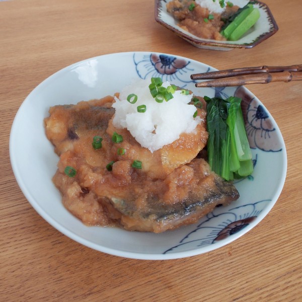 無地のお皿に煮魚を盛りつけるとなると「全体的に茶色いのでなかなかかっこよく決まらない。」そんな悩みを抱えている方へ是非おすすめをしたい器です。お皿の片側だけにビオラの花が描かれているので、単色になりがちな煮魚を盛りつけても様になります。今回、大根たっぷり鯖のみぞれ煮を作って煮汁を飛ばしすぎちゃったのですが(笑)深さがあるので煮汁たっぷりの煮魚でも受け止めてくれる頼もしい器です。赤魚やカレイの煮付けもお似合いですよ。