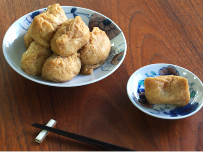 色味が地味な料理は、お皿に盛りつけてもなんだかイマイチになりがちです。そんな時はそっと花を添えてくれるこのお皿を使います。料理を引き立ててくれるさりげない絵柄が素敵!茶色一色のいなり寿司でも不思議とさまになりますよ。