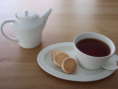 ティータイムに、SAKUZANのスープカップをティーカップとして使い、ティーバッグ置きとしてお揃いの豆皿を使ってみました。ティーバッグ以外にも角砂糖置きにも使ったり、お茶菓子を添えたりと、このサイズは何かと便利。いろいろな色があるので、同じ色でも違う色で使っても素敵ですね。
