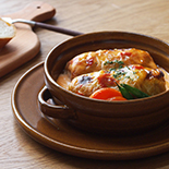 オーブン料理は実はとってもシンプルな調理法!下ごしらえをした材料をオーブンウェアに並べてあとは焼くだけ。オーブンでじっくりと熱を通した料理は素材の味が引き立ち、見た目も豪華な一品に。他の調理法とはひと味もふた味も違う美味しさです。ちょっとおめかししたいときは同じシリーズのプレートLをアンダープレートとして使うとカフェのような雰囲気が出ますよ。
