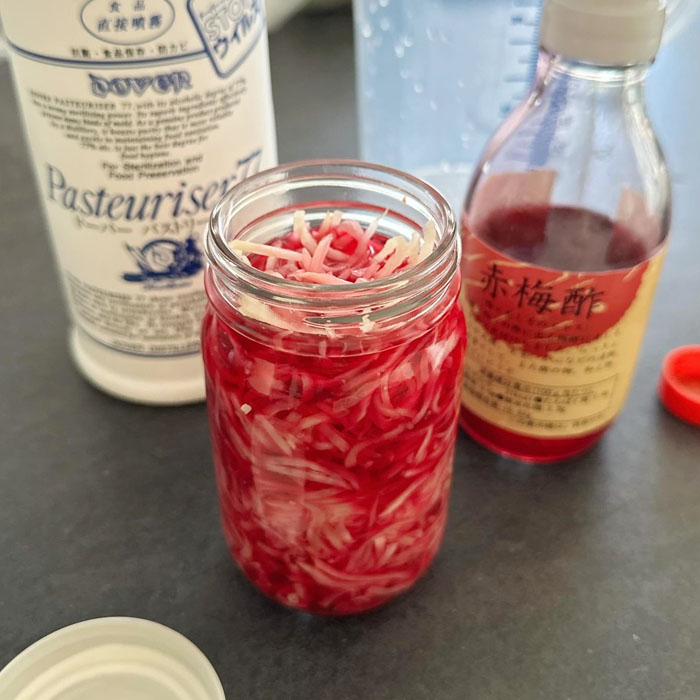 刃が交換できて、スライスから千切りまでいろんな薄さ・太さに対応できるスライサー「ベンリナー」。新生姜が出たらなんとなく「ガリ」を作っていたのですが、我が家はなんだか減らない。そこで焼きそばを作れば「紅生姜!紅生姜!」と幼少期関西育ちの家族が言うので、紅生姜を作ってみることに。レシピを調べたら新生姜を千切りにして「梅酢」を注ぐだけ。めっちゃ簡単でした。焼きそば、たこ焼きなどに活躍しています。ベンリナーは入荷待ちが長いことが多いので在庫があるうちにゲットです!