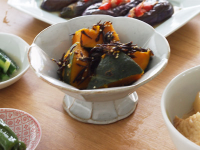 ちょっとした煮物を入れても様になる器。食卓の中でひょいっと頭が出るくらいの高さが華やかさとメリハリがでます。主張しすぎないデザインが副菜を盛り付けた時にちょうどよく、器だけ見ると洋風ですが和食に使うのがおすすめです。