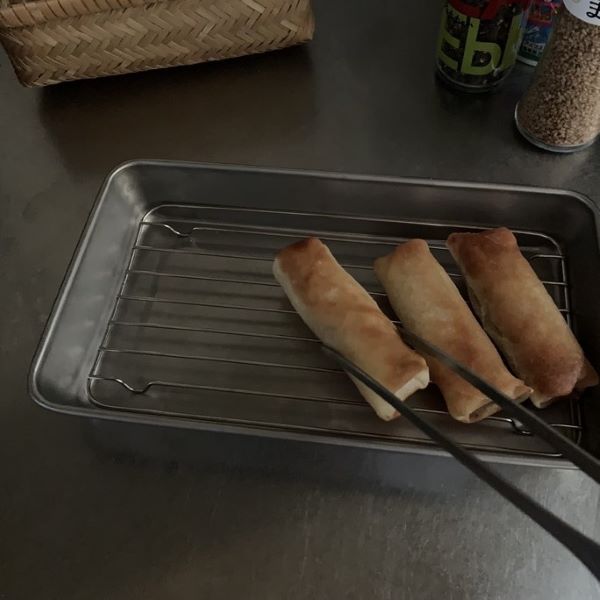 下ごしらえに使ったり、ちょびっと切った食材をスタンバイさせたりするのにも活躍するスリムバットですが、スリムバット用アミを組み合わせて少量の揚げ物を休ませておくのにも便利です。何よりも、名前の通りスリムなので通常のバットよりも場所を取らないのが私的グッドポイントです。1~2人分のお弁当用のちょっとした揚げ物にもってこいなサイズです。