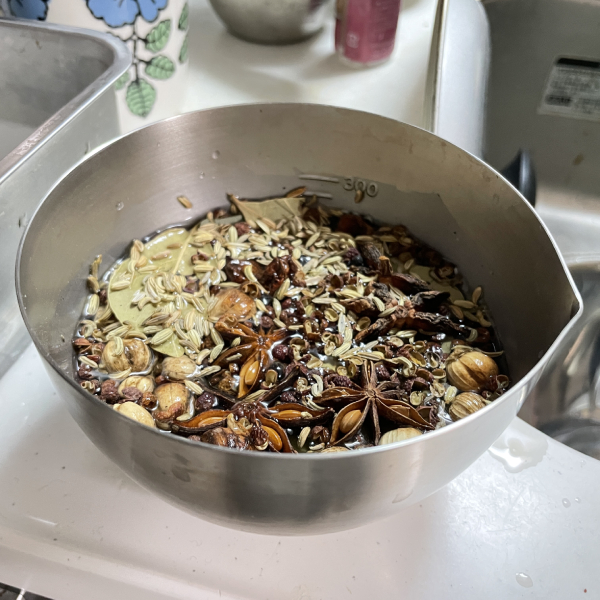 うちで月一回中華風の牛スネ肉煮込みを作ります。お肉以外で一番大事な準備は香辛料です。写真通りにたくさんの種類の香辛料を用意しています!香辛料は袋から出してすぐ使ってもいいですが、お水に浸けて、軽く洗ってから使った方が香りがよく出るようになります。この11cmの下ごしらえボールのサイズと容量はちょうどいいですし、においも付きにくいので、この作業をするときにとても便利です。写真だけみたら普通のステンレスボールかもしれないですが、以前買ったほかのボールより品質のいい商品で、長く付き合える頼もしい道具だと思います。