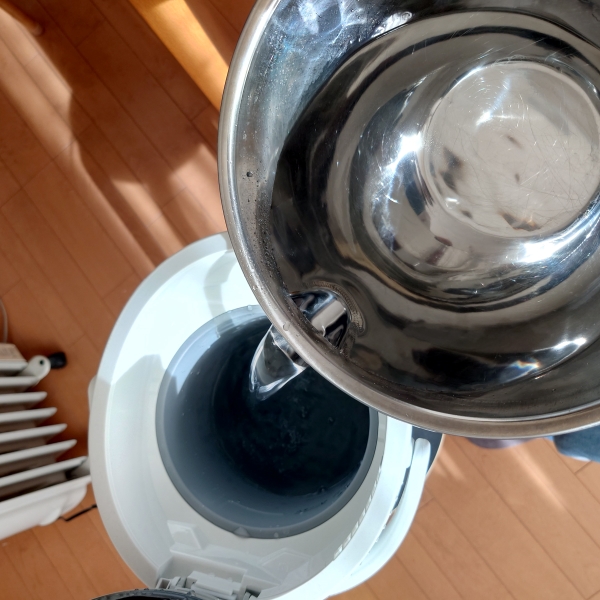 加湿命の我が家は容量4Lの大きめタイプを愛用しています。適湿にしてくれる自動加湿にしていますが、それでもこの季節は1日1~2回の給水が必要です。最初はケトルで給水していたのですがキッチンと加湿器を何度も行き来しなければならず面倒で。。。その時に目に入った横口ボウル26で試してみたら、キッチンとの往復が2回で済みました!注ぎ口があるので水をこぼすことなく給水できてストレスフリー。毎日の洗米、加湿器の給水、野菜を洗う時、などなど大活躍してくれているコスパのよいアイテムです。