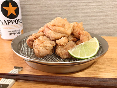 唐揚げが大好きな私。かなりの頻度で唐揚げを揚げるのですが、その度にお皿にキッチンペーパーを敷いていました。でも!この盆ざるにまる型トレー19cmを組み合わせれば、揚げたての唐揚げを直接盛り付けられます!しかもトレーがお皿代わりになるのでそのまま食卓へ…我ながら便利な使い方を思いついたものです。