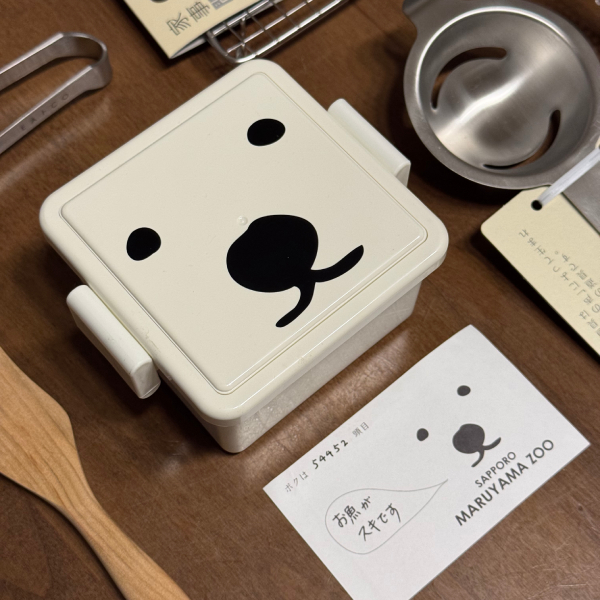 ほのぼの系の白クマの表情に癒されるじぇるく~まのお弁当箱は、お子さんだけでなく女性の方のランチタイムにも遊び心をプラス。バックル部分が耳のように見えるのも可愛いんですよ。サイズはS(オス)とL(ボス)をご用意しました。このシリーズは札幌円山動物園のオフィシャルグッズで、売上の一部をホッキョクグマのエサ代として円山動物園に寄贈しています。