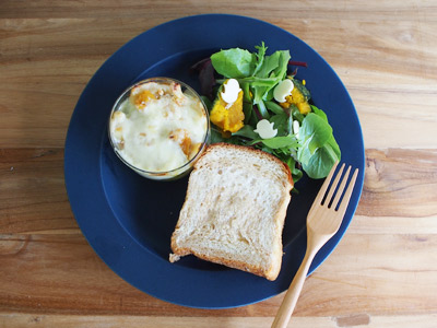 スライスチーズをおばけの抜き型で抜いてサラダに入れました。踊ったり、かくれんぼしているようにも見えて可愛らしいおばけたち。ハロウィンシーズンには大活躍の抜き型ですよ。