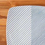 1984年に登場して以来、30年以上続くデザインです。重ね縞には手描き風の青い縞模様が描かれ、器の四隅の反りが特徴。また、左右の縞模様を変えることで色々な使い方が楽しめます。焼き魚やおにぎりなどの和食を盛り付けたり、パンや少し汁気のある惣菜を盛り付けたり。どのような料理とも相性がよく、どこか北欧らしい佇まいの森正洋氏デザインの「重ね縞」。料理の盛り付けの新しい魅力を発見できます。