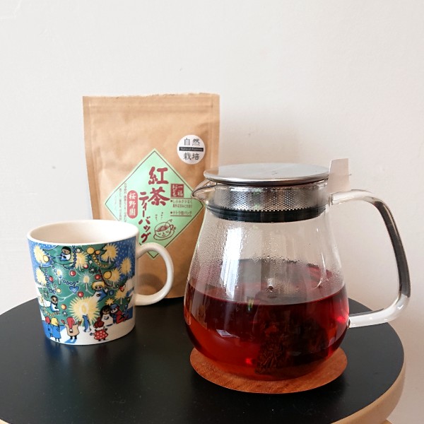 スタッフ蟹谷(お買い物上手)から使い勝手の良さを聞き、サイズで迷ったのでスタッフ中澤(商品知識豊富)に相談して我が家は720mlを購入しました。この日はつきじ常陸屋で売っている渋みの少ない自然栽培の紅茶が在宅勤務のお供でした。ティーパックタイプの紅茶ですが継ぎ足ししながら飲みたかったのでこのポットがちょうどよかったです。ムーミンマグなら多めの2杯分が入りますよ。