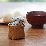 大らかな手描きの風合いを感じさせる文様を描いた、「手描きの風合いの」かや織ふきん。このあられは揺らぎのある円を不規則に散りばめたあられ模様を捺染(なっせん)し、「手描きの風合いの」かや織ふきんに仕上げました。サイズは30cm×40cmのコンパクトな長方形。奈良の特産であるかや織で作った表に柄、裏は晒しの蚊帳生地(綿100%)5枚を重ねて縫い上げているため、程よい厚みがあり丈夫なふきんになっています。