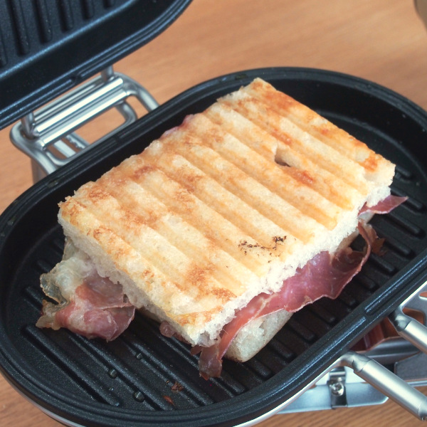 ホットパンの約半分サイズのパニーニパン。アウトドアにちょうど良いサイズです。上下のパンは取り外しが可能。ひとつでウインナーや卵焼きを作り、もうひとつで焼きおにぎりを作ったりすることもできますよ。