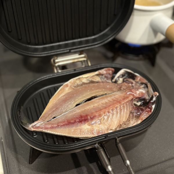 朝食に鯵の開きを焼こうと思って家事問屋パニーニパンに入れてみたところ、しっぽを無理やり曲げたらぴったり納まってなんとも朝から気分が良い!蓋を閉じて中弱火で焼いている間にお味噌汁や玉子焼きを作って、香ばしい香りがしてきたらひっくり返して2~3分焼けば出来上がり!煙の出も最小限だから火災報知機の心配もしなくていいし、何よりお手入れが簡単。しかもコンパクトで隙間にも収まり、フックに吊るして収納できるので取り出しやすく、気づけば毎日のように手が伸びています。