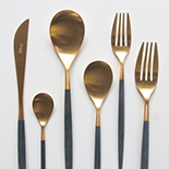 ブラック×マットゴールドのコンビネーションはラグジュアリーな雰囲気がありますが、MIOのフォルムがプラスされることで、より女性らしいテイストがテーブルに広がりそう。テーブルスプーンよりもふた回り程小さめサイズ。テーブルスプーンだとちょっと大きい・・・という女性の方やお子さまのメインスプーンとして使っても良さそう。出番の多いデザートスプーンは何本か揃えておくと便利です。