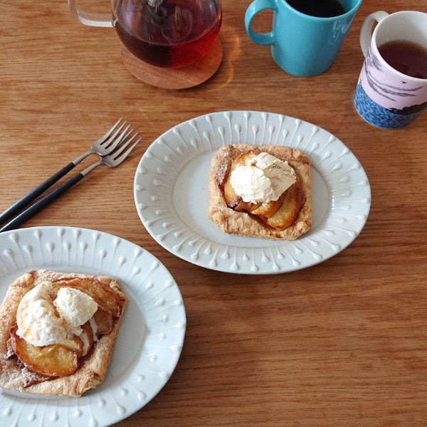 赴任先から戻っていた夫に、少し早めのバレンタインのお菓子を作ろうとしたら、なんとスケールが壊れていました。容量で量るお菓子にしようかとも考えましたが、5月に移転してしまう近所の人気洋菓子店の存在を思い出し、1時間近く並び最後の一個のチョコレートケーキをゲット!私の在宅勤務のお供のリンツチョコも添えてデザートプレートにしました。いっちんのシンプルで立体的な模様は盛り付けたものを惹きたて、普段は食事のシーンで使っていますが、デザートにもナイスなプレートです。