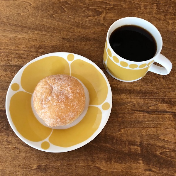 レトロな雰囲気が何とも言えないティーカップ&ソーサー!アラビアのほかの模様と同じようにこちらのソーサーも普通のお皿として使える形です。今日はアンドーナツにティーカップだけどたっぷりのコーヒーを入れておやつタイムです。カップも安定感のある形で飲みやすいですよ。