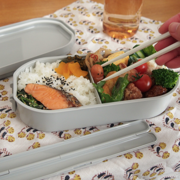 プラスチックのお弁当箱は扱いやすさが魅力。フタを外せば電子レンジでお弁当を温めて食べることができますし、保冷剤入りのフタは少々重たいですが本体は軽量なので持ち歩きも楽ちん。密閉性の高いパッキンが付いているので汁漏れの心配もないですよ。