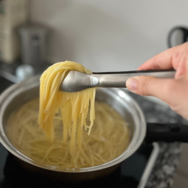 パスタ調理ならソース作り、パスタの茹で上げ、盛り付けまでこの一本で。また、照り焼きチキンを作るときはタレをお肉に回しかける工程もおてがる料理トングにお任せ。調理中にキッチンツールを持ち替えるひと手間もなく、洗い物が減るのは大きなメリット。さらに、食材をしっかりと挟んで掴み、先端がピタッとくっつくからお肉を一枚だけ掴みたいというような繊細な作業も得意です。※テフロンなどの加工が施されたフライパンやお鍋に使用するとキズが入る恐れがありますのでご注意ください。