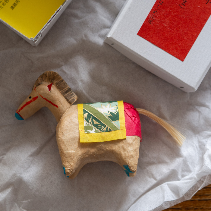この仙台張子の干支の置物をご紹介するにあたって、店長みさこが一目惚れし、取り扱いができるようにスタッフの中島が仙台まで何度も足を運んでいたのをそばで見ていたので、私にとっても愛着のあるアイテムです。東北地方の置物は、表情の愛嬌と素朴さがなんとも愛らしく、年齢を重ねるほどその可愛らしさにキュンとします。2026年は60年に一度の丙午(ひのえうま)。「うま(馬)くいく」一年になりますように—そんな願いを込めて、今から準備を始めています。