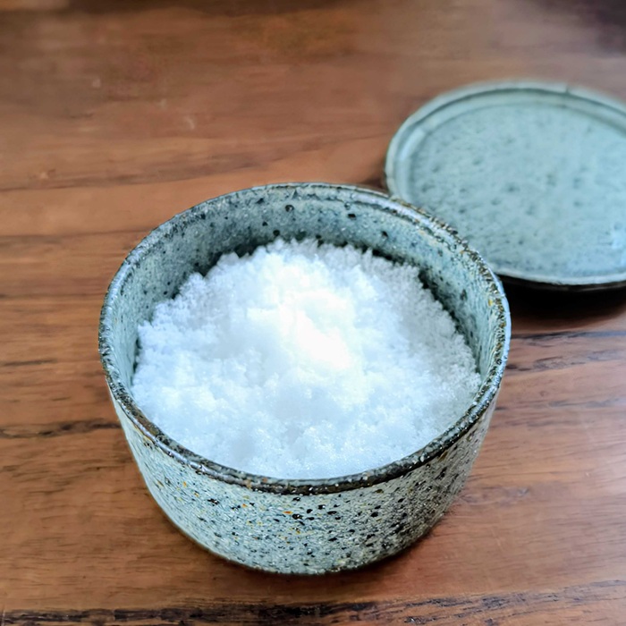 片手に収まるくらいの大きさで、“ちょっといいお値段の塩”を入れて使っています。お刺身をお塩でいただく時など、テーブルにさっと出すのにちょうどよく、佇まいもいい感じ。素敵な色味だなぁ…と思っていたら、別名は「おじぞう」。その名前を知って、なんとも可愛らしくてますます愛着が湧きました。ざらりとした質感も好みで、手に取った時の感触も、眺めた時の表情もお気に入りです。