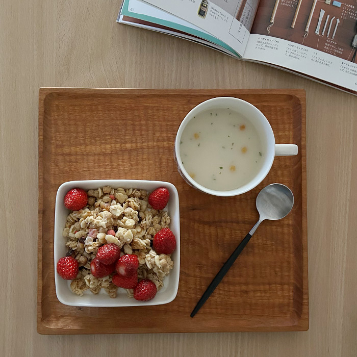ティーマの12cmプレートの使い勝手の良さは幾度となく語っておりますが、実は12cmのスクエアプレートも手に取らない日はないっていうくらい使い勝手が良くてお勧めなんですよ。デザート、サラダボウルとして使うのはもちろんのこと、オーブン使用可なのでミニグラタンや、正方形を活かして手巻き寿司のネタや素麵の具材を盛り付けたりなど。複数個横に並べると収まりが良くて気持ちいいー。今朝は朝食のヨーグルト、グラノーラと季節のフルーツ添え。山盛りです(笑)。さぁ、今日も一日頑張りましょう!