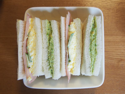 ふちが立っていてスプーンですくいやすいので、いつもこどもたちのおかず入れとして使っているティーマのミニサービングスクエアプレート。小鉢やサラダ入れ、グラタン皿としても大活躍します。サンドイッチの断面をみせる盛り付けにどうかなと思っていれたらちょうどいいサイズでした。