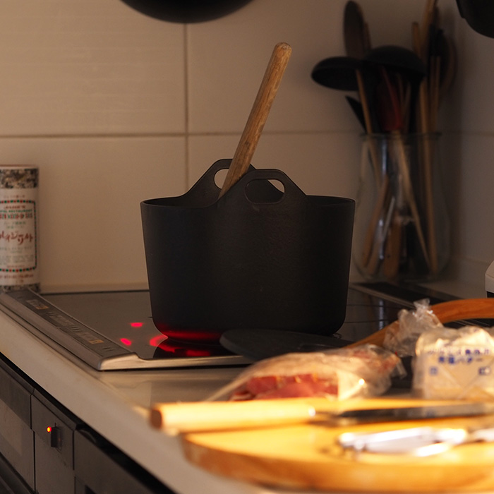 かもめ食堂で小林聡美さんが肉じゃがを作っていたお鍋。私のせまいキッチンをちょっとおしゃれに見せてくれている気がして、コンロの上に出しっぱなしにしています。別に使わなくても良いのですが、ついつい木の取っ手で蓋をあけてしまいます(笑)蓄熱性が高く煮物やスープがおいしく煮えるのはもちろんのこと、最近はサルパネヴァでお米が炊けることを知って炊き込みご飯なども炊いたりしています。