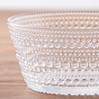1964年に若きオイバ・トイッカがデザインしたカステヘルミは、朝露のしずくをイメージした大小さまざまな丸いガラスの粒が規則正しく並び、器全体から宝石のようなまばゆい光を放ちます。ヌータヤルヴィで製造され、廃盤ののちも人気は衰えず、2010年にオイバ・トイッカのデザイナー生活50周年を記念して嬉しい復刻となりました。フィンランドの壮大な大自然を内包するカステヘルミのその姿は、光の加減によって変幻自在に表情をかえていきます。朝日を浴びてキラキラと反射する美しさ、キャンドルの灯りによって内から外へと幻想的な影を放つ美しさ、表情豊かなカステヘルミが暮らしに彩りをそえ、あたたかな炎を灯すかぎりこれからも人々を魅了し続けるでしょう。