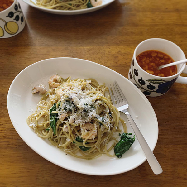 我が家のカトラリーはカイ・ボイスンのデザートサイズが基本になっています。サイズに関してこれは本当に好みですが、私の手が小さいのも理由かもしれません。私より手の大きい家族に使い勝手はどうかや、柄は短すぎないかなど聞いてみたものの「これでいい」そうです。スープスプーンも愛用していますが、スタッフ間では「ジャムスプーン」もおすすめとか。意外とみんなも使ってるじゃないの〜。美しいサテン加工は口当たりも良く、私が好んで使うポイントでもあります。