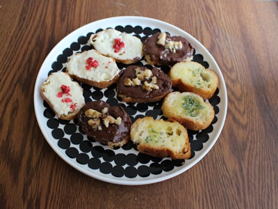 マリメッコのラシィマットは明るいマリメッコの中ではモノトーンですが 遊び心のあるドットがかわいらしく いろいろな食べ物をのせるのに重宝します。 20cmは程よい大きさで、お茶タイムのお菓子をのせて家族で食べるのに ちょうど良いサイズです。 つやのあるお皿が気分をアップさせてくれます。 今回はラスクを作ってみました。 下手なお菓子もちょっとおいしくみえると自己満足しています。