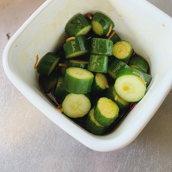 いただき物で突然やってくる山盛りのキュウリ。大量消費のため漬物にする時は野田琺瑯のホワイトシリーズで。Lサイズならたっぷり5本分くらい入ります。ぶつ切りにしたキュウリを琺瑯容器に入れ、小鍋で沸かした醤油ベースの調味液をじゃじゃっとかければおしまい。あとは美味しくつかるのを待つだけ。我が家の夏の定番漬物です。