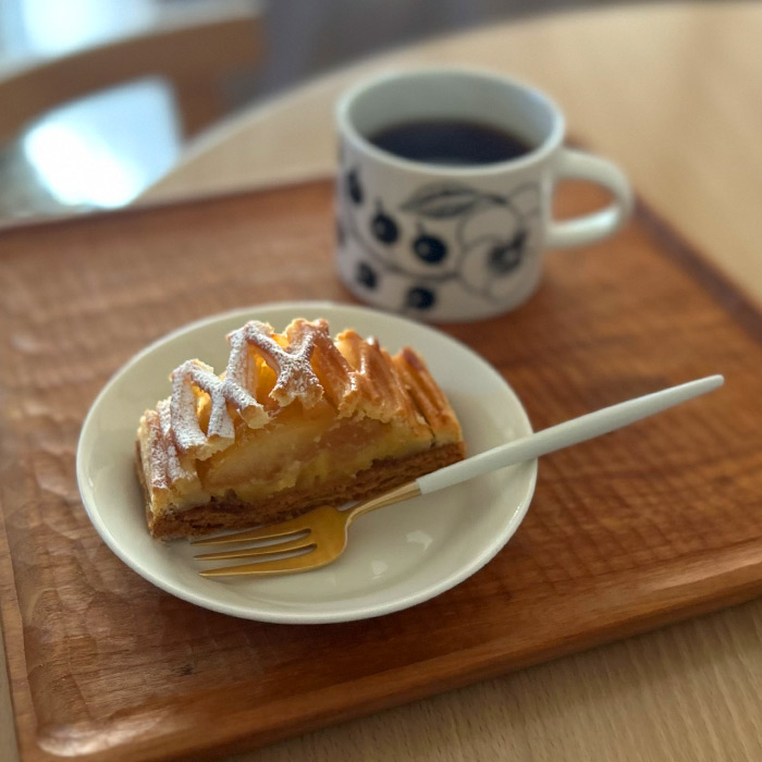 事務所内サンプルで使い勝手の良さを実感。まずは6枚購入。実際に使ってみると6枚では足りず、さらに6枚追加購入しました。シンプルな同サイズの取り皿はスタッキングもできて非常に便利。普段使いには少々お高いですが、もう10年以上使い続けているのに一つも欠けることなくすべて現役。おもてなしの時にも使えるし、結果元は取れたかなと自己満足しています。今日は在宅勤務中の小腹を満たすアップルパイを載せて。プレートに余白はないけれど、さっと洗えるこのサイズについ手が伸びてしまいます。