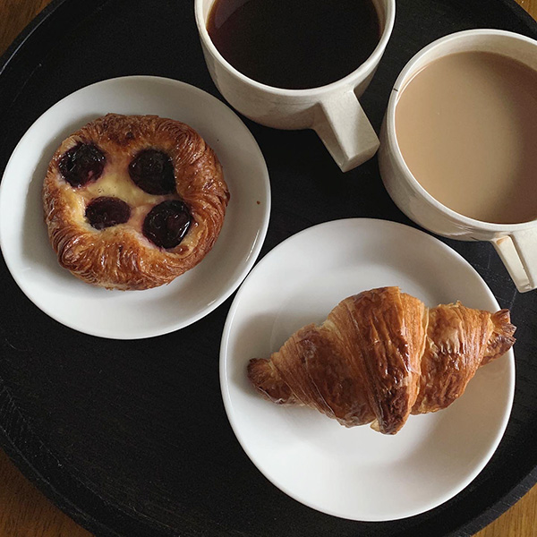 どうですか?築地折峰で買った美味しいペイストリーをのせてみました。15cmのプレートはおやつの時間に何かと出番が多いです。大きすぎず小さすぎない15cmサイズはお盆にのせてもおさまりが良く、リビングのコーヒーテーブルに運ぶのに重宝しています。スタッフコメントを見たら「みんな持ってる!」。それも納得なプレートです。イッタラ、アラビアの製品は沢山使ってきましたがまだ割れたり欠けたりしたこともないです。