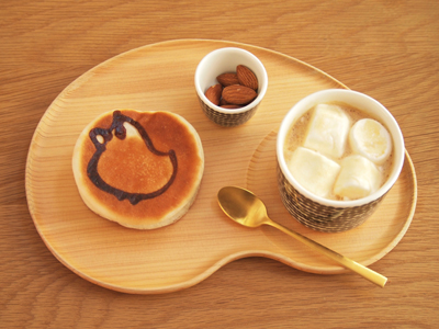 そらまめくんのような形のかわいいプレート(こどもは「ハートのかたち~」といっていますが)。ホットケーキをのせたら、おしゃれなカフェででてきそうな朝食になりました。大人の朝食やデザート用のワンプレートにも。