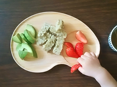 もう何年も毎朝使っているので、子供たちも自分で用意するときにはこのビーンズプレートを出してきます。新しい塗装になって木の風合いはそのままでまったく剥げずにきれいなままなので以前より気を使わずにガンガン使えちゃいます。