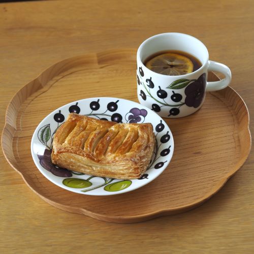 紅茶にはパープルバラティッシ、コーヒーにはブラックパラティッシを使うことが多いです。ティーカップは口径が広いので香りを感じやすく、パープルバラティッシの瑞々しい絵柄は紅茶の香りも色も引き立ててくれるような気がします。