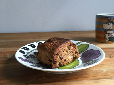 パーパラの16.5cmプレートは取り皿としても使えますが、おすすめはデザート用です。友人の結婚祝いで「ケーキ皿がほしい!」といわれたので4枚セットにしてギフトにしました。ガトーショコラなど、彩りが少ない食材をのせる方がパープルパラティッシの紫とオリーブグリーンに映える気がします。今日はカタネベーカリーのスコーンでひと休み。